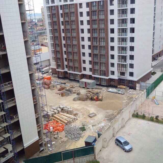 Был сегодня на стройке. В первом доме люди уже вовсю живут, идут ремонты и парковка заполнена машинами.