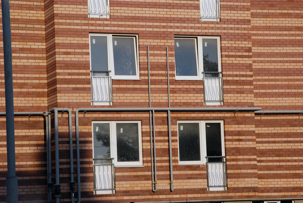 По-моему, это чисто попытка съэкономить в конце стройки. Интересно, по проекту у них действительно были эти лоджии из самого дешёвого кирпича и сверху заштукатурены и помазаны краской?