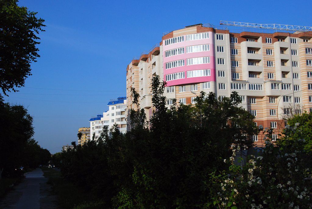 Проезжал мимо, да, заштукатурили и покрасили фасадной краской в цвет магнолии, ведь комплекс так и называется.Можно было и короедом сделать.